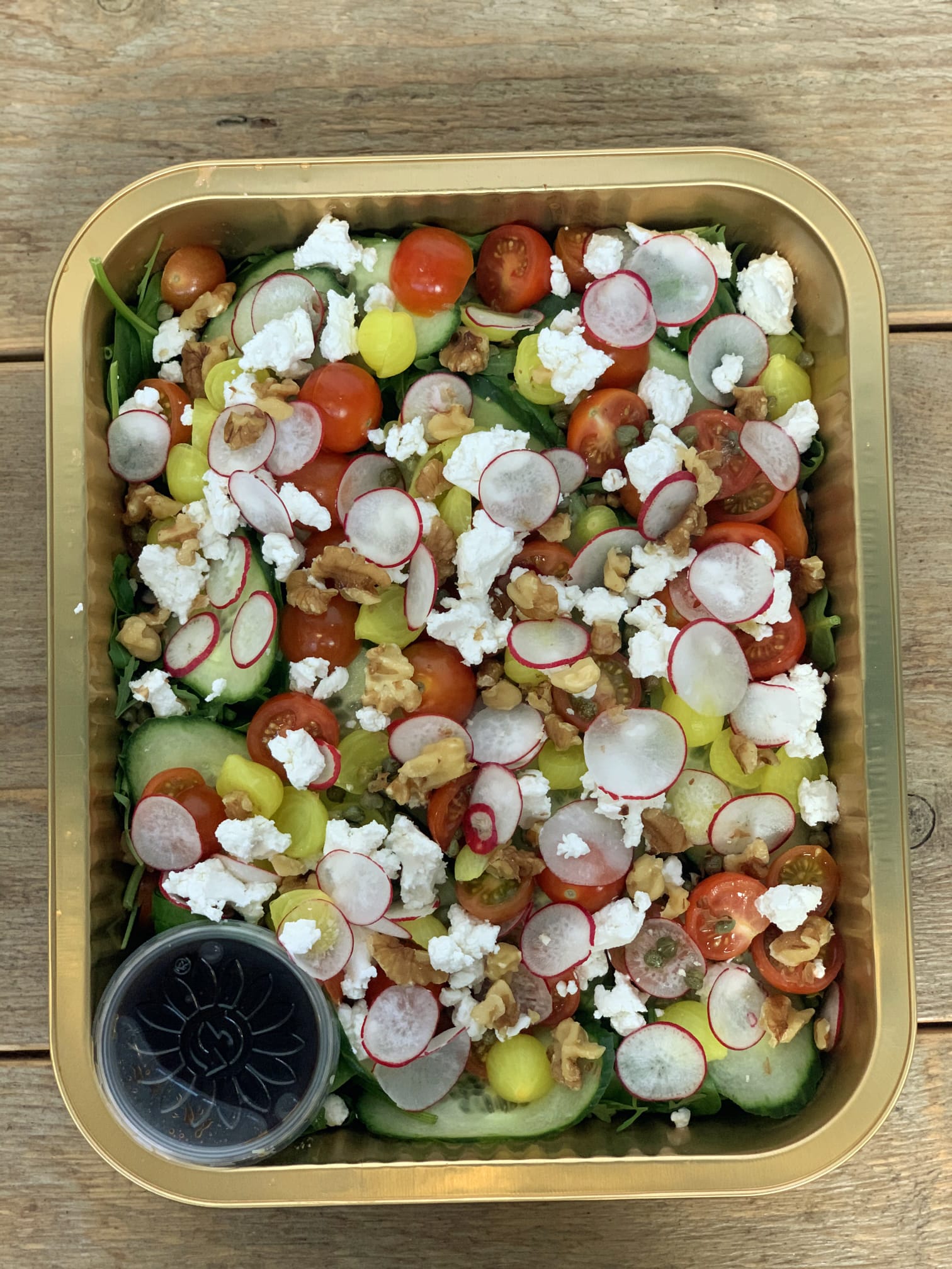 Wij bieden een arrangement van gezonde, voedzame lunches aan met eigenlijk altijd 2 stuks sandwich en 1 warm item,
