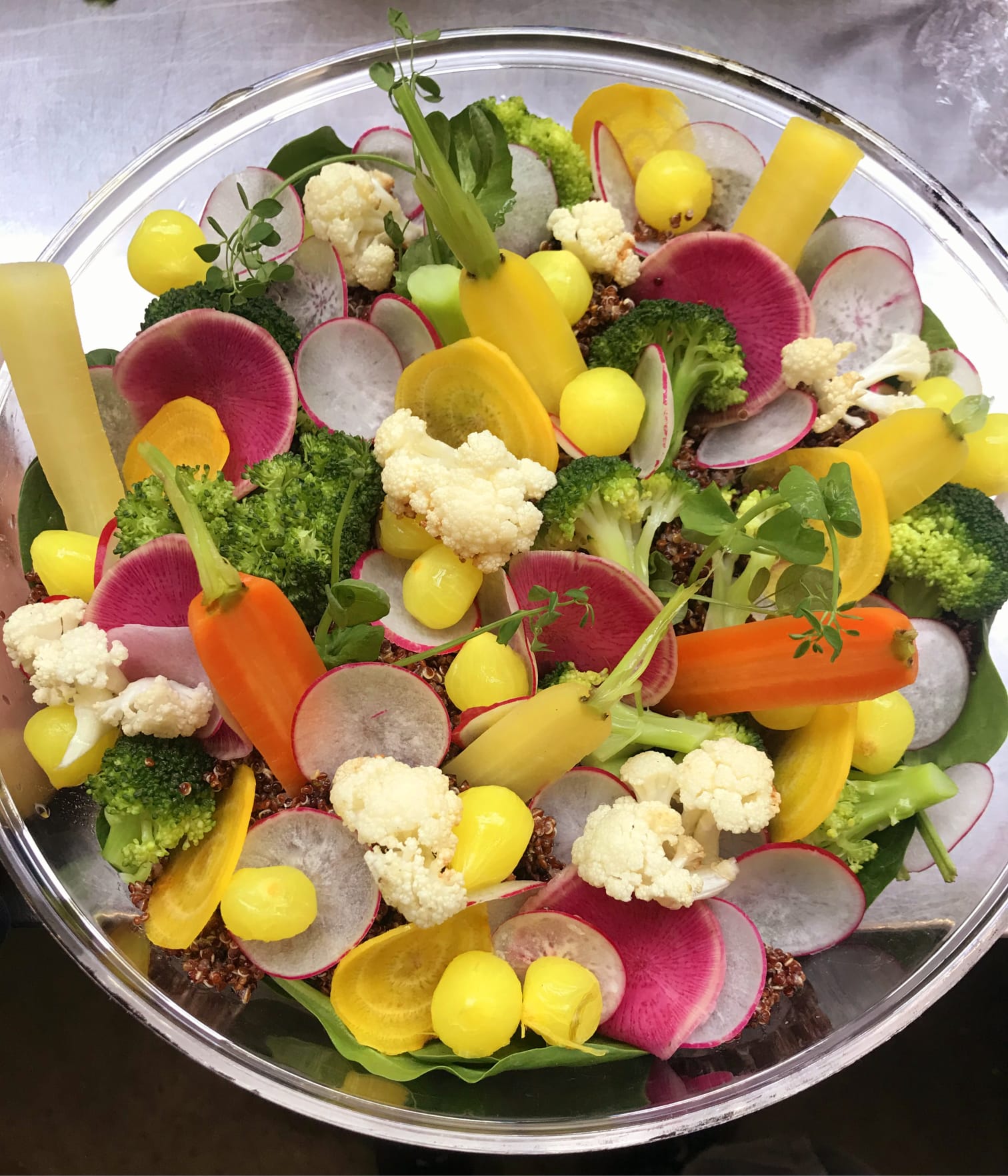- Vegetarische tomatensoep met verse basilicum of eventueel een Tom Kha Kai soep geleverd in persoonssoepcups