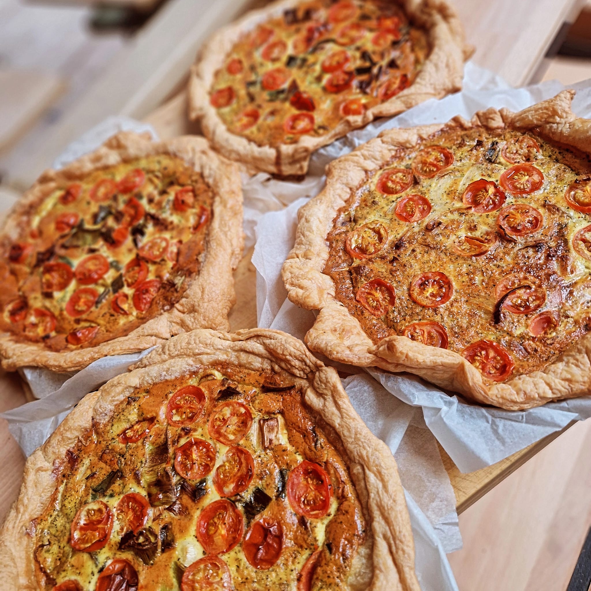 Een stukje vegetarische quiche met bijvoorbeeld: